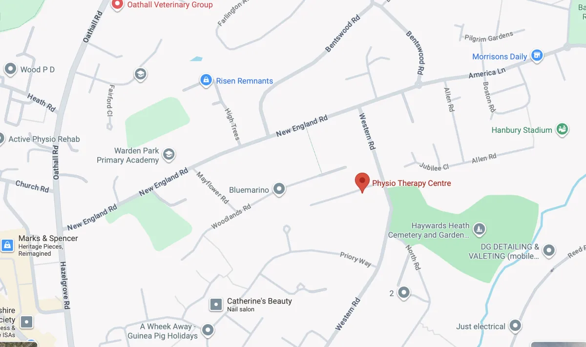 We help people in Haywards Heath with back pain and sciatica get the right help quickly. In your 45-minute session, we assess you, treat you hands-on, and give you a clear exercise plan. With over 100 years in business, you are in experienced hands.